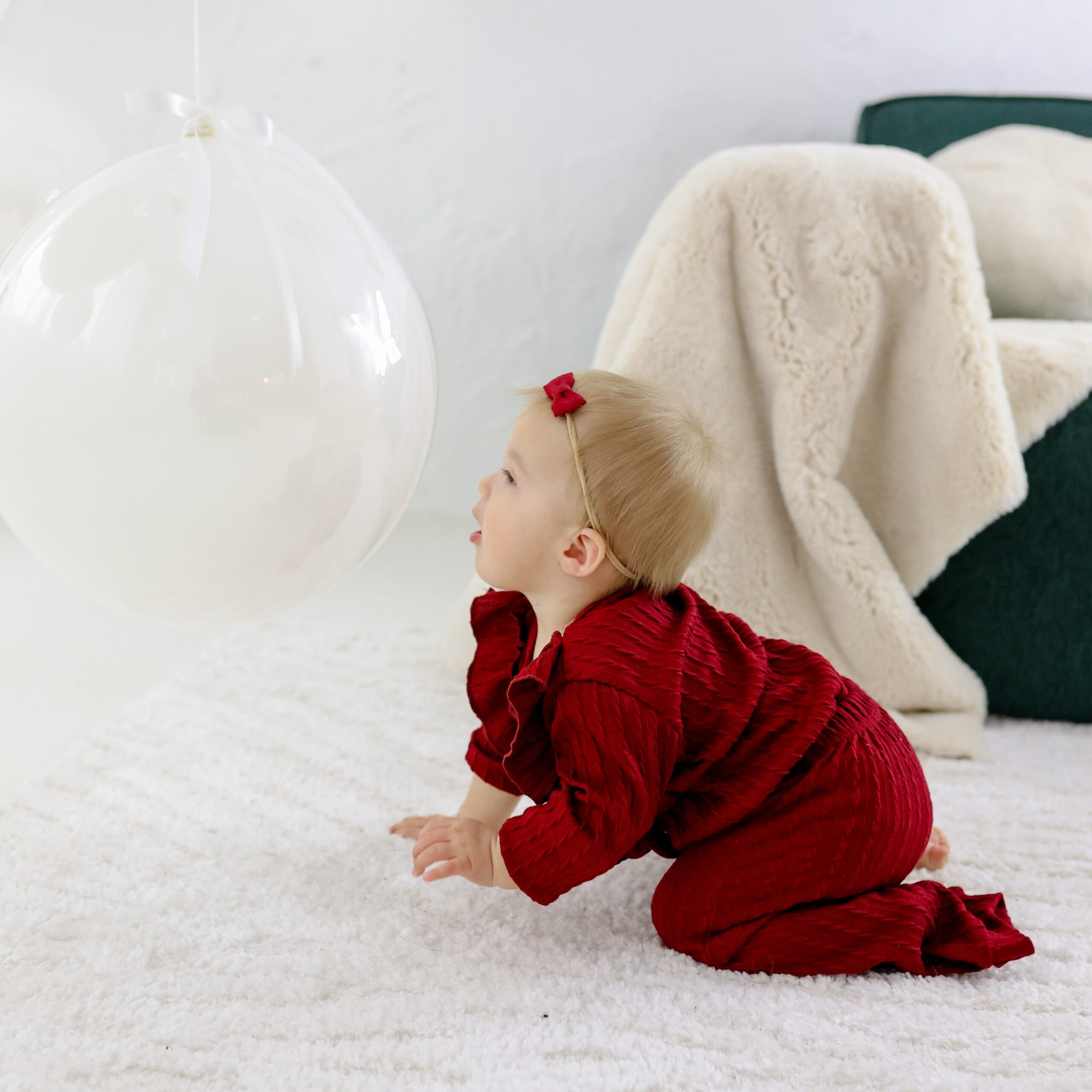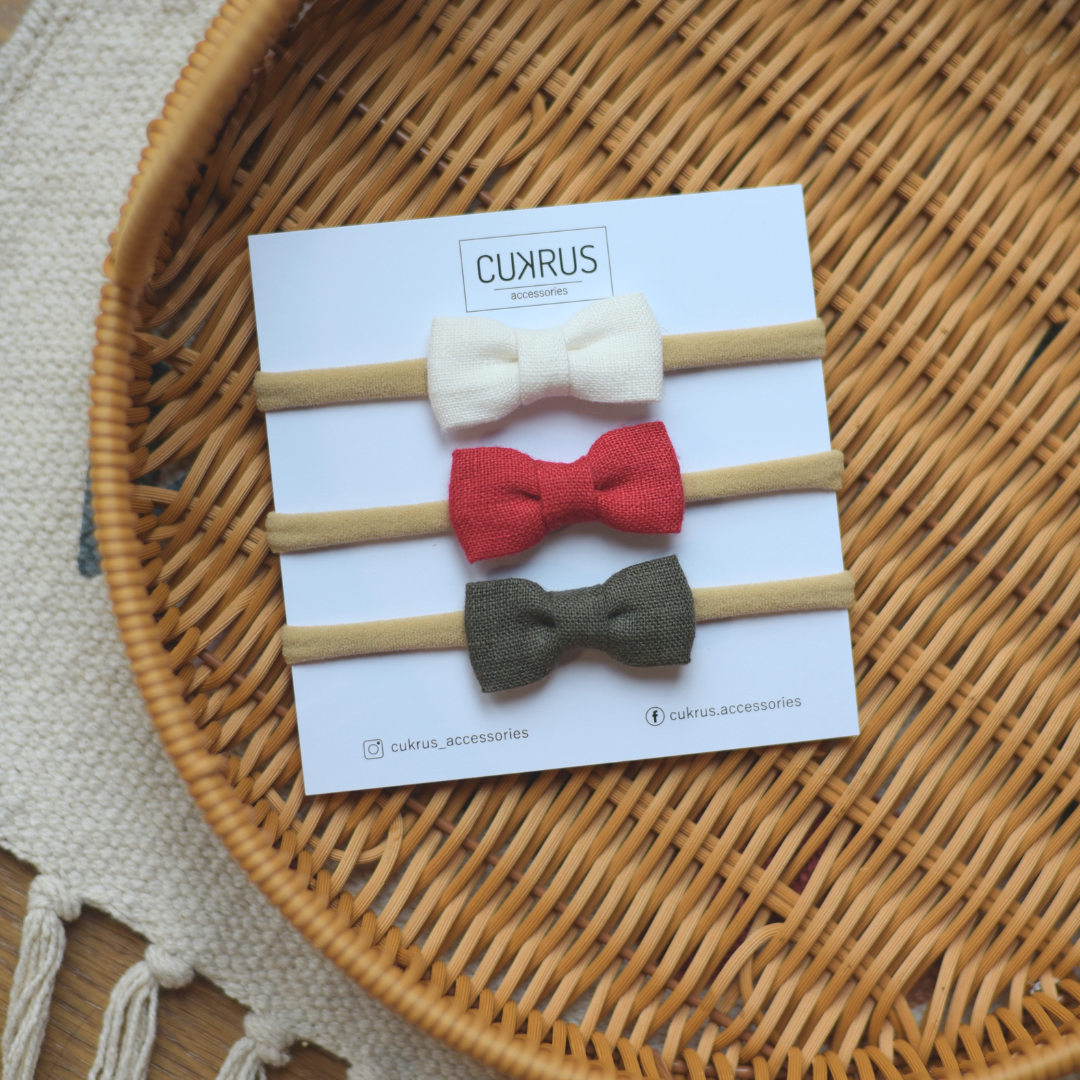Lininių galvajuosčių rinkinys „Kalėdos” – mielas akcentas jūsų mažylei. Pieno baltos, žalios ir raudonos spalvų derinys puikiai tiks šventiniam laikotarpiui.