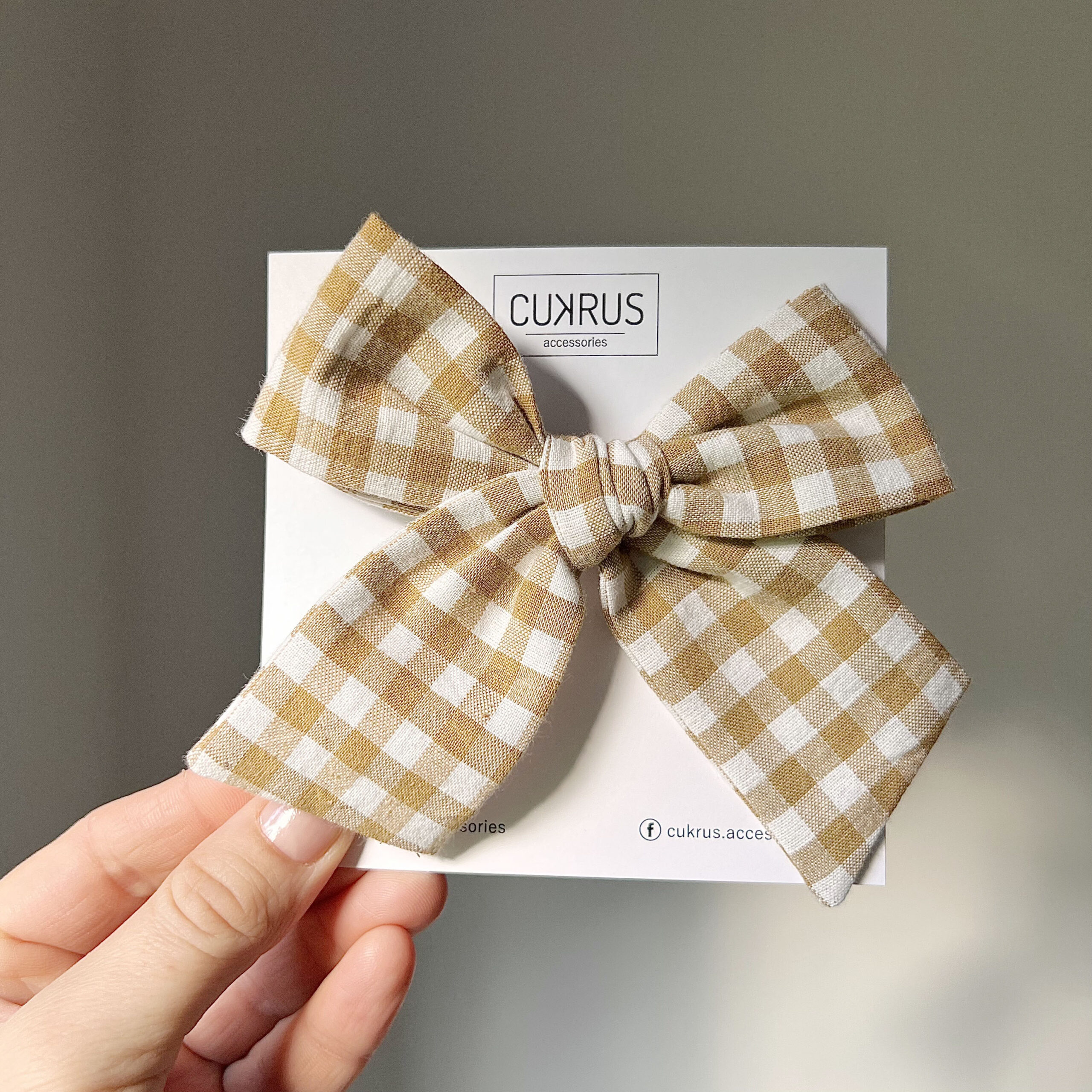 Plaukų aksesuaras kaspinėlis, rudas su langeliais
